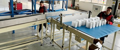 該項(xiàng)目主要由保鮮盒整理、套膜收縮、自動(dòng)裝箱、自動(dòng)封箱、金屬檢測(cè)、自動(dòng)碼垛、自動(dòng)輸送等7大部分組合而成。整線為無人化操作,包裝產(chǎn)能超過10萬件保鮮盒/小時(shí)。