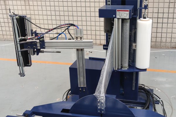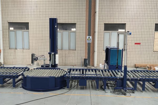 該線體主要實現(xiàn)對白卡紙紙卷捆扎和纏繞,線體一共由三部分組成:棧板穿劍捆扎機,托盤在線纏繞包裝機,滾筒輸送機。如用戶有其他包裝需求,該線體亦可配套覆頂膜機、水平捆扎機、護角機、在線貼標噴碼等設備。