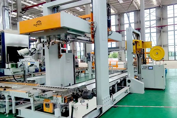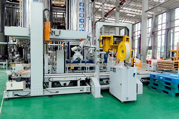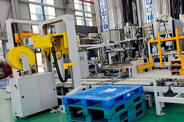 該碼垛機最大特點是負載大,可同時碼2個 200kg的鐵桶,線體后端可配合捆扎機或托盤在線纏繞機,實現(xiàn)對桶的固定。多用于液體膠、硅橡膠等化工行業(yè)以及潤滑油等液體類行業(yè)使用。