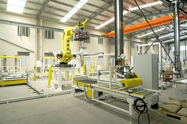 根據(jù)不同的物料情況,艾訊會配備不同的袋整形以及壓平機(jī)構(gòu),同時也可以根據(jù)用戶的實(shí)際產(chǎn)量情況,由一臺碼垛機(jī)器人兼容一條或多條來料線,共同碼垛,成本低,效率高,占地面積小。